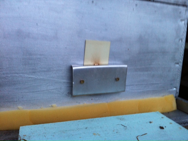 - Le déplacement d'une ruche à peu de distance (-de 3kms) est souvent un problème facilité avec cette sortie obturée par une simple chicane (tôle pliée permettant le passage) placée devant, tout en fermant, provisoirement, l'entrée principale par une bande de mousse synthétique. Les abeilles vont découvrir une nouvelle sortie et procéderont alors à un nouveau repérage. La chicane empêche aussi les rayons de soleil d'inciter les abeilles à sortir par temps de neige. Il est toujours indiqué de choisir le moment opportun pour effectuer un petit déplacement ; un long confinement lié au temps hivernal étant toujours préférable. La principale aération se trouve dans le plancher grillagé.