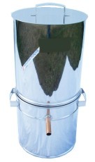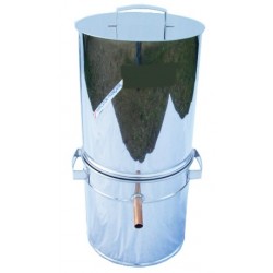 Chaudière étudiée pour la fonte des cires et la stérilisation des cadres, composée d'un panier inox , d'une réserve d'eau, d'un tube diffuseur de vapeur et d'une cloche recouvrant le tube et le panier.