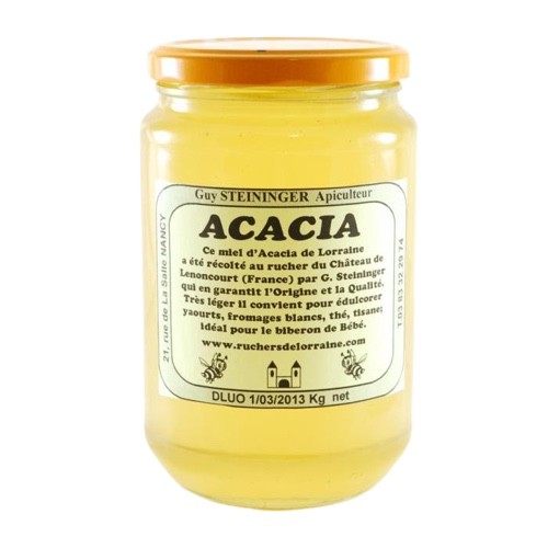 Ce miel d'Acacia de Lorraine a été récolté au rucher du Château de Lenoncourt par Guy Steininger qui en garantit l'origine et la qualité.