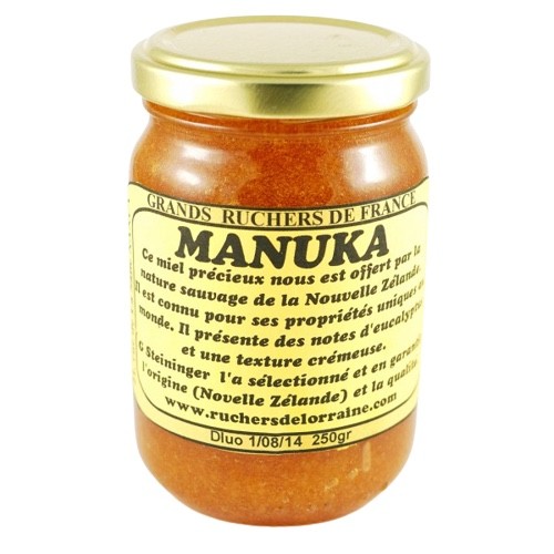 De la même famille que le tea tree, le manuka est un petit arbre qui pousse à l'état sauvage en Nouvelle Zélande dans des conditions climatiques difficiles. Sa floraison ne durant que 6 semaines, les abeilles disposent de peu de temps pour recueillir le pollen qu'elles transformeront ensuite en miel précieux à la texture crémeuse et au goût très apprécié des gourmets.