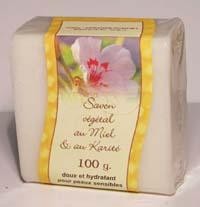 Présentation : savon 100 g emballé.