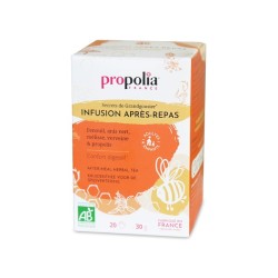 Ingrédients : Plantes (93,5%) : Guimauve Bio, Tilleul Officinal Bio, Romarin Bio, Oranger Doux Ecorce Bio, et Extrait de Propolis Bio (6,5%).