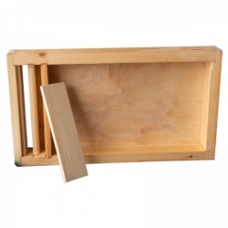 Ce produit permet au nourrissement de se maintenir à température par tous les temps grâce à la chaleur de la colonie. Ce nourrisseur couvre-cadres est en bois de pin, étanche et est protégé à la cire d'imprégnation.